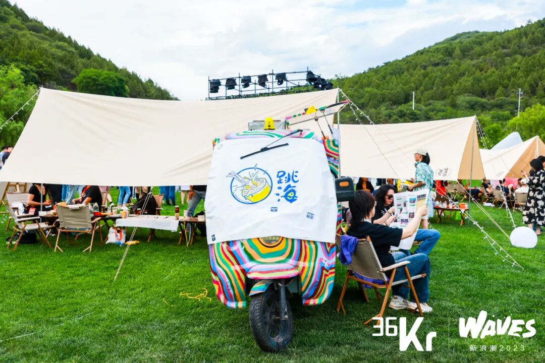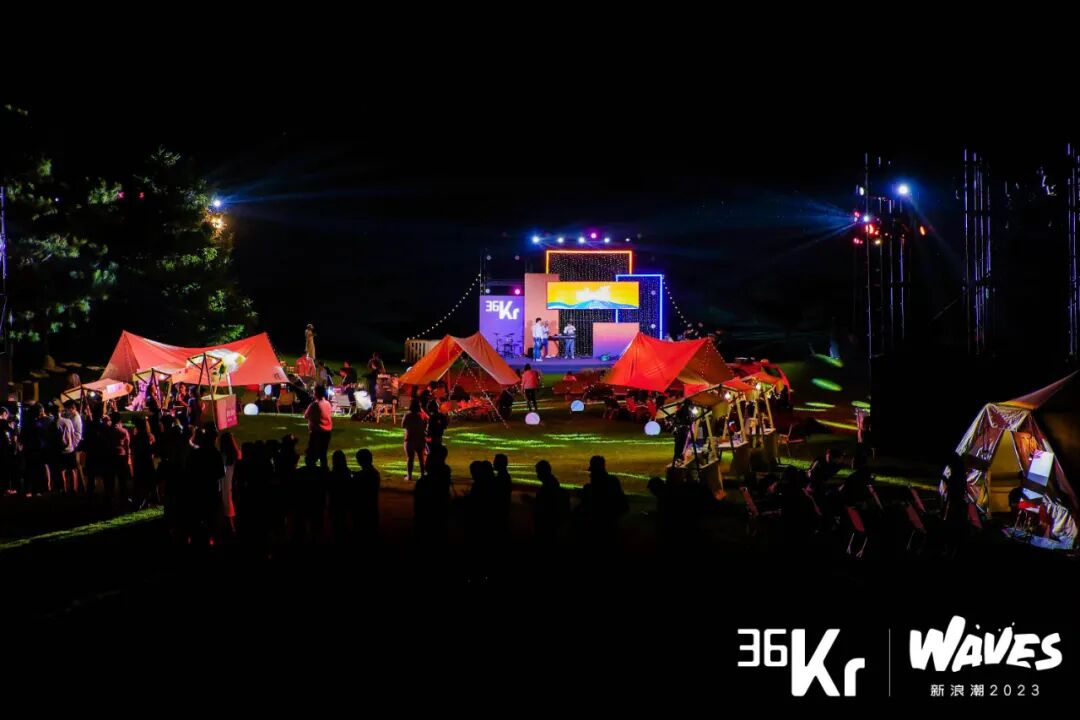金海湖碧波岛上,一场户外盛典热度延续。草坪上的露天电影,户外营地的地摊市集,帐篷中的分享,欢快的乐队还有不插电式聊天......WAVES力求呈现出一个年轻创投群体特有的自由社交场。正如暗涌主编、WAVES发起人刘旌所说:“几年、十几年甚至更长的时间之后,我们今天在场的人中如果有一些人,会一不小心想起今天,大概大多数记忆都是模糊,但你也会觉得这是一个美好的夏天夜晚。有落日,有草坪,有啤酒,有音乐,有电影。还有一群和曾经的你一样年轻的朋友。这也就是为什么在各类商业峰会已经如此冗余的今天,我们还想开发一个新的IP:WAVES的原因。”36氪CEO冯大刚更是借此次大会再次传递36氪初心:“在多数媒体还在追逐大公司的时代,我们就将目光着眼那些名不见经传的小公司、或‘小人物’身上。这是因为我们认为,更早地发现、服务创新公司,也同样是媒体的应有之义。”WAVES新浪潮2023大会是“WAVES”的首次呈现,新起点新征程,相信凭借多年专业沉淀和商业积累,36氪将一直陪伴和帮助年轻创业者和投资人,让WAVES持续奔涌。![]()