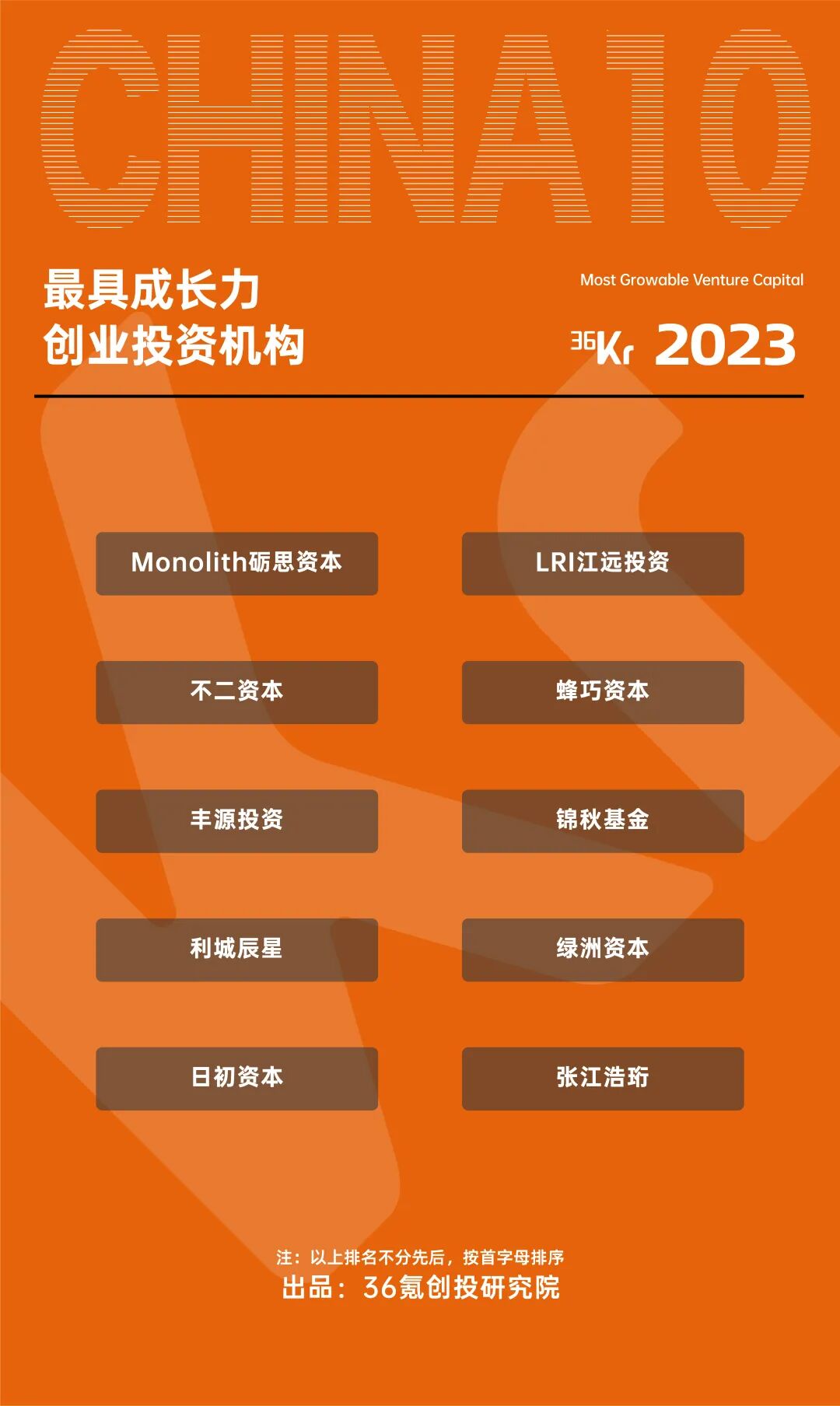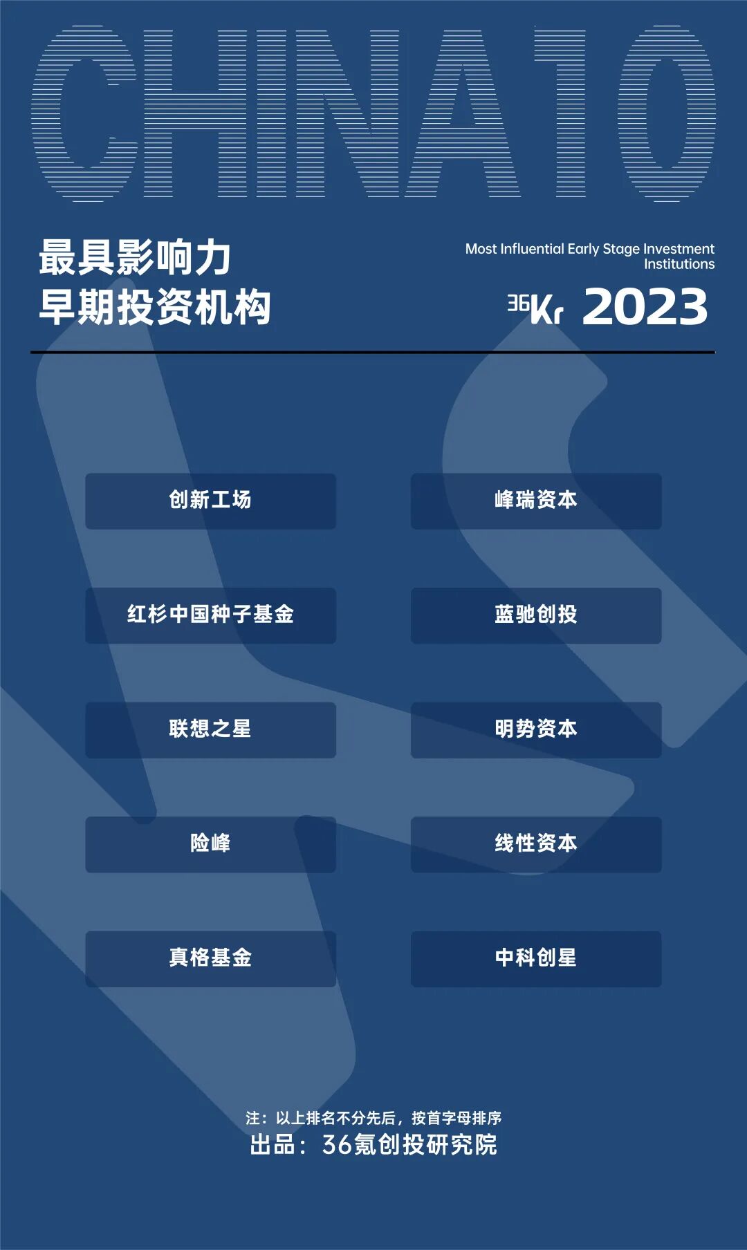 出品|36氪创投研究院2018年,36氪首次推出「最受创业者欢迎投资人/投资机构」名册。我们试图了解:除了资金、业绩之外,还有什么原因影响着创业者对一位投资人的评价与选择?六年间,我们在无数创业者口中,收获了很多答案。首届「Waves新浪潮2023」大会上,这个问题的答案又多了两个。一位拥有过成功创业经历的投资人回忆自己的创业时代:“要是只跟我谈钱,我不太喜欢。我喜欢那些比我聪明的投资人。创业本身有太多问题,你并不知道答案。我喜欢和他们交流,他们总有办法让我跳出固有思维、启发到我。”在与上述投资人对谈的“00后”创始人口中,答案则是:“有投资人评价说00后创业者敢作敢为。我们的确没有什么失败的包袱,更敢于去尝试新的东西。所以我们希望投资人和我们一起,去面对这种可能性和恐惧感。持有共同的信念,是最大的前提。”浪潮涌起、风口轮转,在资金、资产端节奏普遍降缓的大环境之下。“智识的启发”、“信仰的共识”、“心灵的陪伴”等等,更加成为了创业者在意的事情——这也是「最受创业者欢迎投资人/投资机构」名册始终存在的原因。自今年3月开始,36氪创投研究院通过问卷调研、数据平台等多渠道方式收集投资机构数据,沟通走访创业者群体,进行交叉验证。最终,2023届「最受创业者欢迎投资人/投资机构」、「最具影响力/成长力」投资机构名单就此生成。数据方面我们关注:募集基金数量和总额;投资项目数量和总额、领投项目数量、明星项目数量;在管项目的成长情况、账面收益;以及退出方式(IPO退出、其他退出)和退出实际分配。值得一提的是,此次调研问卷将投资机构所管理的每一支基金和每一个项目作为关键观察主体,穿透到单笔交易,形成“机构-基金-项目-交易”四个递进层次。另外,「最受创业者欢迎」系列名册的考评时段在4年内(2019至2022),重点放在募、投两大维度(占比60%)。「最具影响力/成长力」系列名册,则是重点关注投资机构在2022年全年的综合表现。![]()