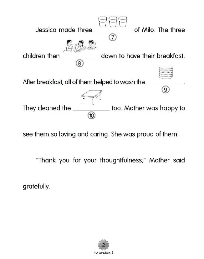一年级有大量的完形填空练习,以及根据图片把句子排序等基础训练。