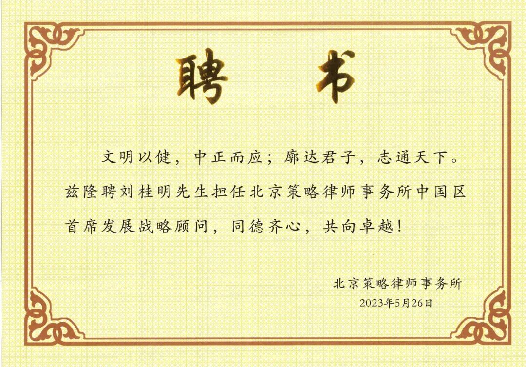 2023年5月26日,“北京青年律师成长论坛暨策略律师事务所青工委成立仪式”隆重举办。在仪式中,策略律师事务所特别聘任刘桂明先生担任中国区首席发展战略顾问。在演讲致辞中,刘桂明老师的分享深入人心,值得每一位青年律师思考。活动业已闭幕,金玉之声长存,现分享于此。亲爱的各位策略律师、各位北京律师、各位北京青年律师:今天是北京青年律师成长论坛举办及策略青工委成立的日子,也是我来到策略成为策略律师事务所中国区首席发展战略顾问的第一天。更重要的是,今天是我与各位青年律师在一起的美好日子。今天虽然不是“五四青年节”,但我却感觉比“五四青年节”还幸福。因为今天有两件大事,一件是青年人的事,一件是老年人的事。今天是策略所把各位青年人和老年人联系在一起的一天,也是策略把成长之道、发展之道、成功之道连接在一起的一天。总书记指出,青春是用来做什么的?是用来奋斗的。当你度过青春这个阶段之后,青春就是美好的回忆。而过往的一切只要我们努力奋斗过了,就是值得回忆的。今天,我要对各位青年律师讲两个话题:第一个话题是我对青年律师的期待和祝愿;第二个话题是我对策略律所的期待和祝愿。什么是青年?我经常拿自己做例子,我称自己是外表年龄的50后、心理年龄的60后、青春年龄的80后、爱情年龄的90后。从这里也可以看出,我也是青年。判断青年的标准是什么?我想,不是你多少岁,身体有多好,以及你心里想的是什么。最重要的是三个标准:第一永远充满好奇,第二永远充满激情,第三永远充满期待。如果这三个标准符合,你就是青年。对于我们法律职业人士来说,就应该看他会不会充满对新事物的好奇,会不会充满对事业的激情,会不会充满对未来的期待。接下来,我们就要聊聊什么是青年律师?毫无疑问,青年律师首先是青年。作为青年律师,我认为就是想办法看到新,想办法看到奇,想办法看到异。如果这三个角度你看不到东西,作为青年律师来讲,你很难成长。对青年律师来讲,我们现在缺的是什么?缺的是知识,是经验,是机会,是资源。这些东西怎么来学习呢?向天边的人学习,向身边的人学习,向书本上学习,向工作中学习。都学习什么呢?我的看法是,学习新知识、奇知识和异知识。第三个方面,我想聊一聊青年律师有什么。我们青年律师,可以说有时间,可以说有热情,可以说有感情,这些都需要,但是最重要的是把你的好奇、你的期待、你的激情和你的工作、你的事业连接在一起。我觉得,青年律师最丰富的就是对未来的期望、对知识的渴望。所以,青年律师到底有什么?我觉得,值得我们青工委认真学习和交流。