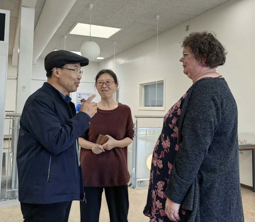 我对Morten老师说:“那年来,我还听过一堂数学课,是一位胖胖的女教师上课,我和她还交流过。她现在在学校吗?”他说:“应该在的,现在还没下班嘛!我去给你找找。”我说:“您当时让我很感动。您给我讲您辅导一个数学成绩不好的叙利亚女孩,后来她的数学成绩提高了。当时我问您,您给她单独辅导有没有报酬,您说您的报酬就是孩子学习进步的笑脸,他们毕业了,成长为合格公民,一代又一代的学生会来看您,这就是对您最大的报酬。当时翻译的丽萨老师都流泪了。您这几句话,我在中国讲课时经常引用。”![]()