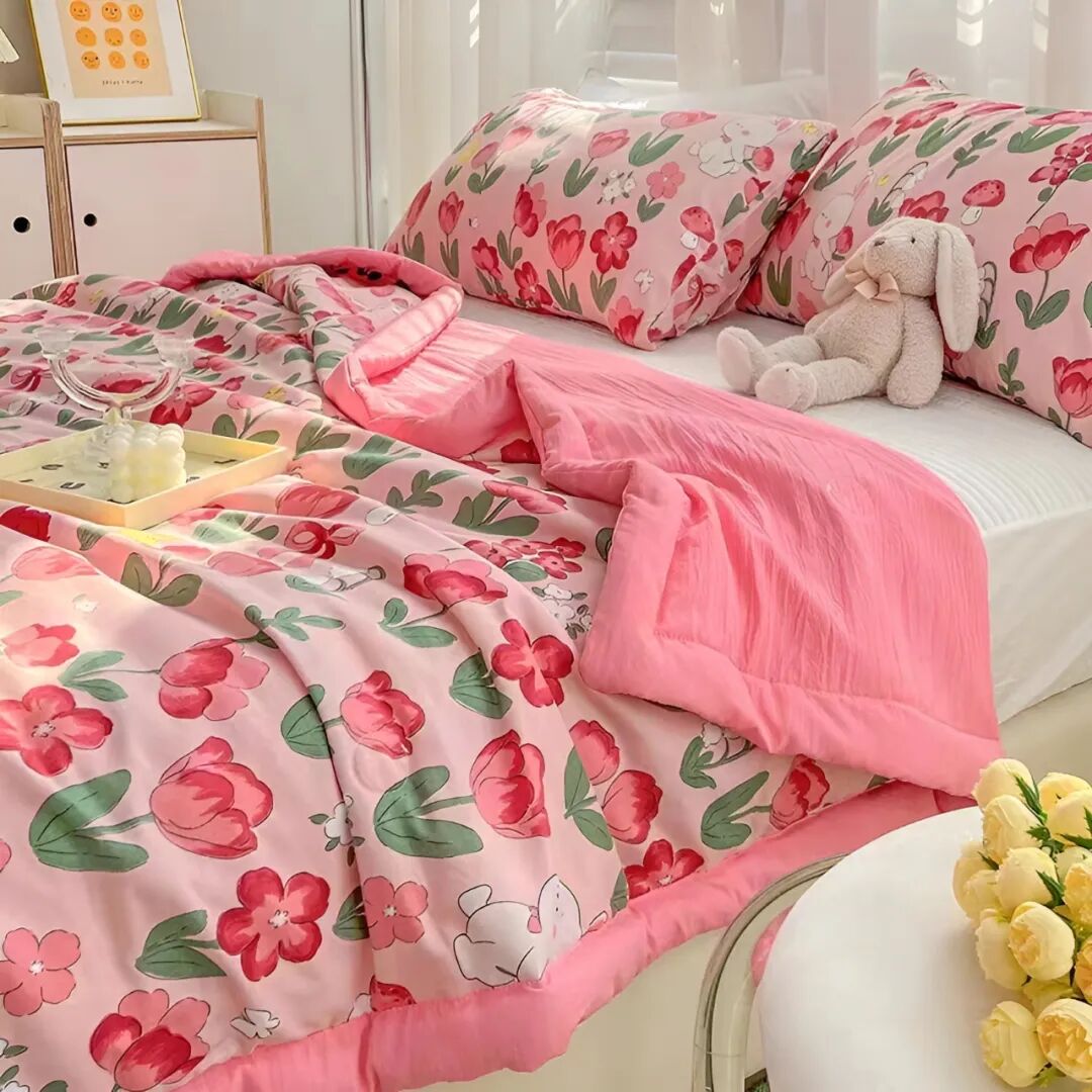 孩子、老人容易受凉体质,开个风扇+夏凉被就足够凉爽; 开空调睡觉,一张夏凉被既不会挡住冷气又能保暖; 天气稍微凉快时盖夏凉被,轻薄透气不会闷汗,也减少了前胸后背长痘痘的机会。