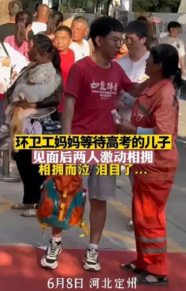 儿子参加高考,而妈妈是个环卫工人,全年无休,所以不能像其他家长一样,穿着旗袍站在校门口祝孩子“旗开得胜”!