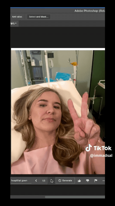 她还不满足于此,觉得自己的衣服还不够“应景”,于是继续框出衣服区域,输入“住院服”,啪的一下,身上的衣服也变了: