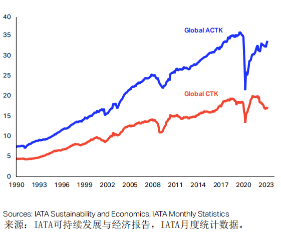 来源:IATA可持续发展与经济部门,IATA月度统计数据