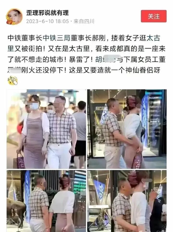 随着这组照片在网络疯传,6月11日一大早,中铁三局董事长郝刚突然登上了热搜。原因是有网友爆料,这次街拍视频中的年长男子是中铁三局的董事长郝刚。