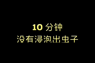 在我们的实测中,基本上 2 分钟左右,就有虫子开始往外钻,全部跑出来大概花了 28 分钟——如果比较膈应吃到虫子,那么可以用盐水泡够时间。
