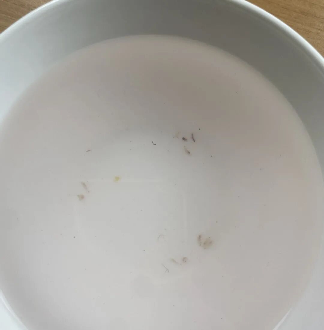 而用盐水浸泡半小时后,小伙伴们纷纷表示不太好了——两颗泡出了 11 条🐛。