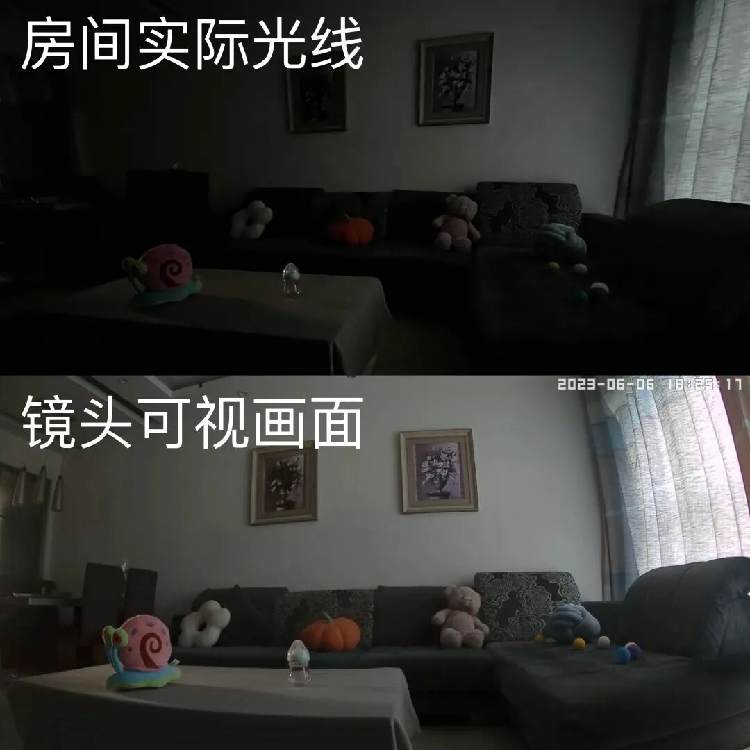 更厉害的是它的超微光感知全彩技术,在下午六点半,室内只有一点点光源的情况下,比人眼看到的还要亮,画面色彩也更鲜明。