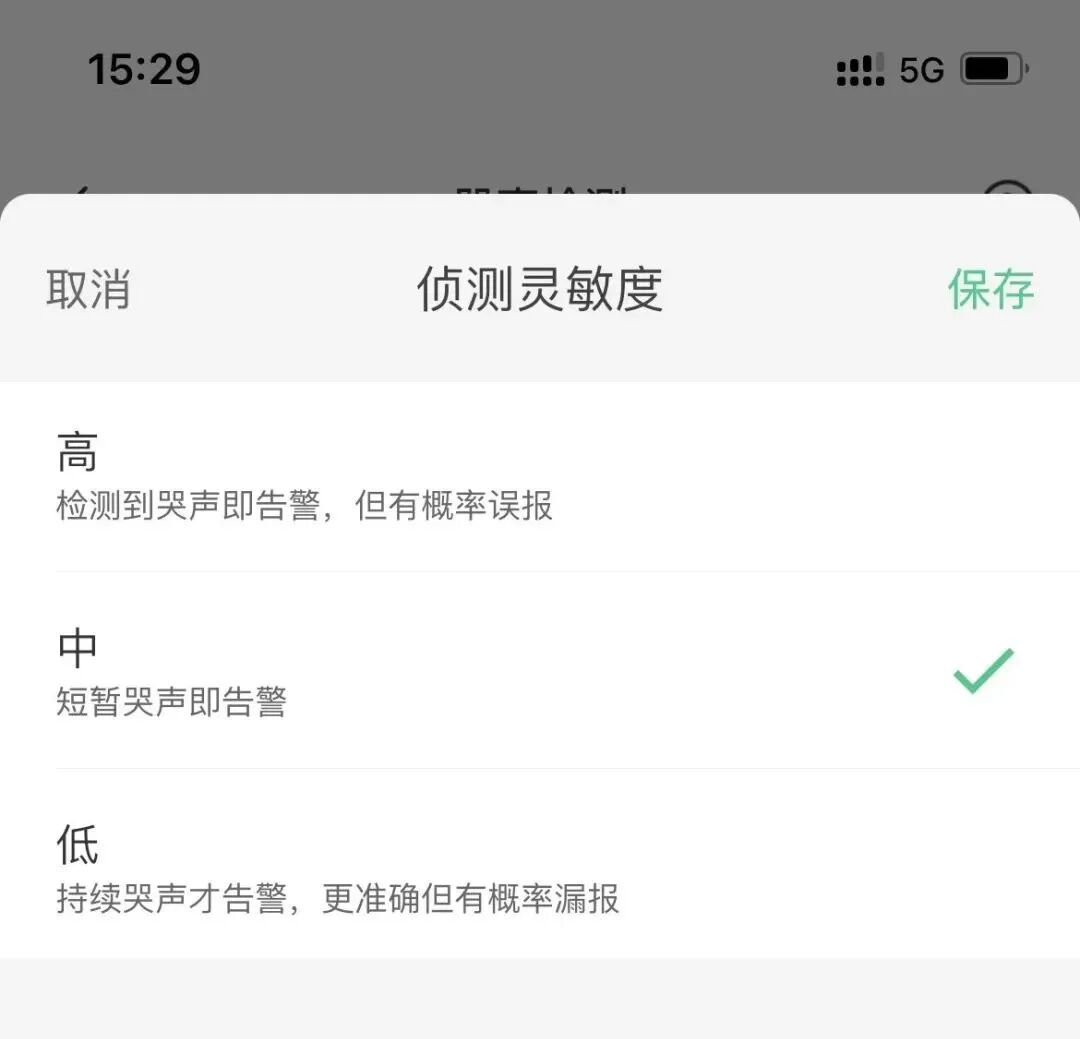 这个功能可以做到精准识别婴儿哭声。如果在大人短暂离开的时候,或者即使有人在旁陪着孩子,只要孩子哭了你就能第一时间得知,比镜头画面更多一重信息传递。