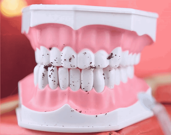 牙缝没清洁到位,加上时不时卡肉丝菜叶,自然养活一大家牙菌斑,腐蚀牙釉质,引起蛀牙、牙周炎等牙病。