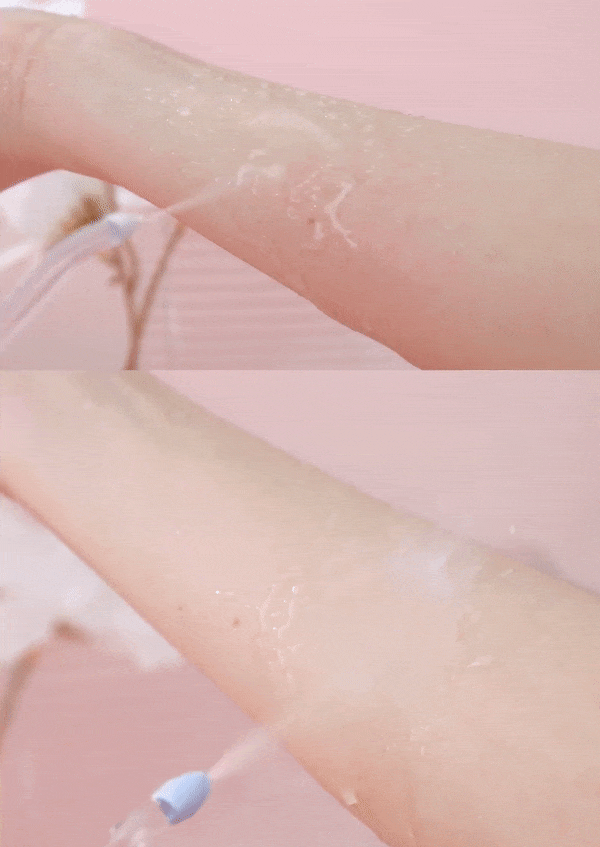 倍至胶囊冲牙器柔净喷头(下)冲在手臂上,不会呲红皮肤
