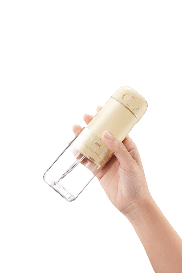 胶囊冲牙器标准喷头,以每分钟 1500 次的频次配合 0.64 mm 精细水线(肉眼看比牙线还细),水压保持快准稳,自然能无盲点精准「狙击」口腔死角,清洁力杠杠五颗星。