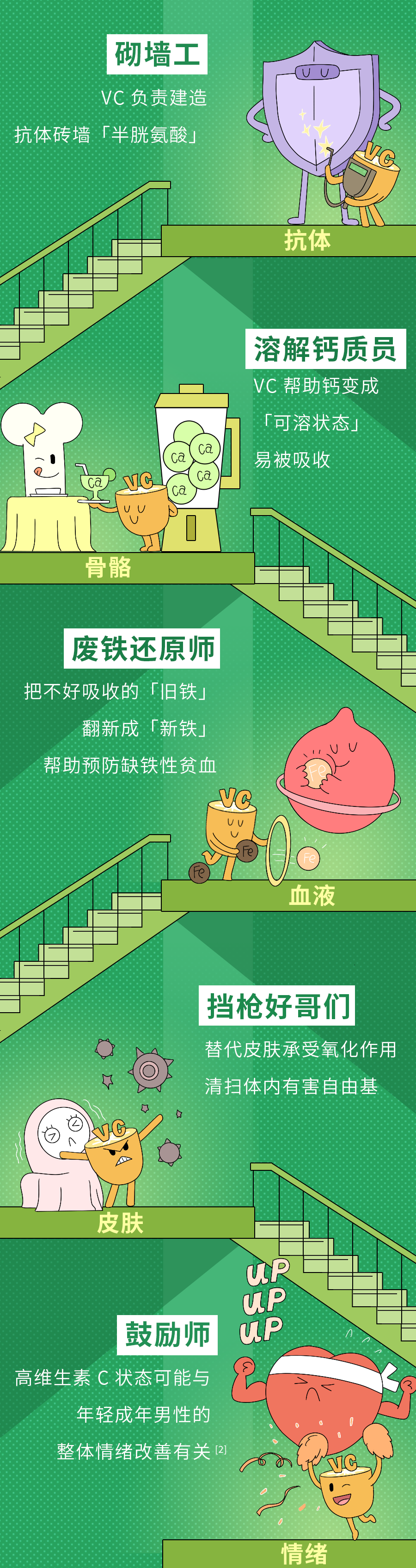 维生素 C 支持着我们身体众多部分的健康,所以当有新的 VC 入场,大家都跑来和它做朋友。
