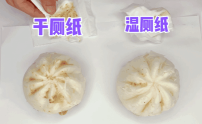 看,湿厕纸清理的包子皮褶皱,比干厕纸清理的要干净很多!而且擦拭过程更温和,包子皮不易破。