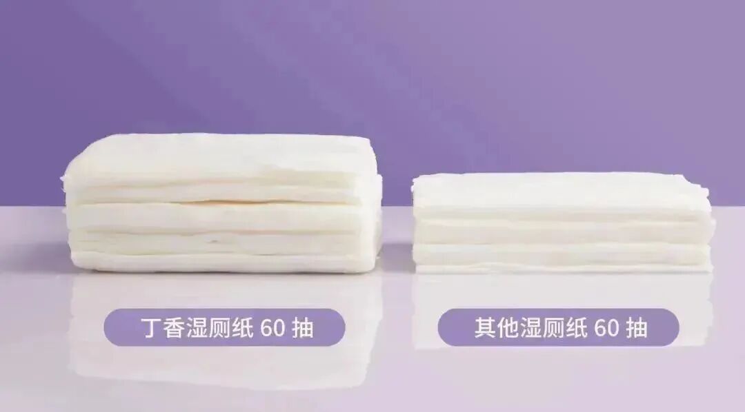 有啥区别?对比一下,同样都是 60 抽纸,我们比某品牌湿厕纸厚度高了将近 1/3。