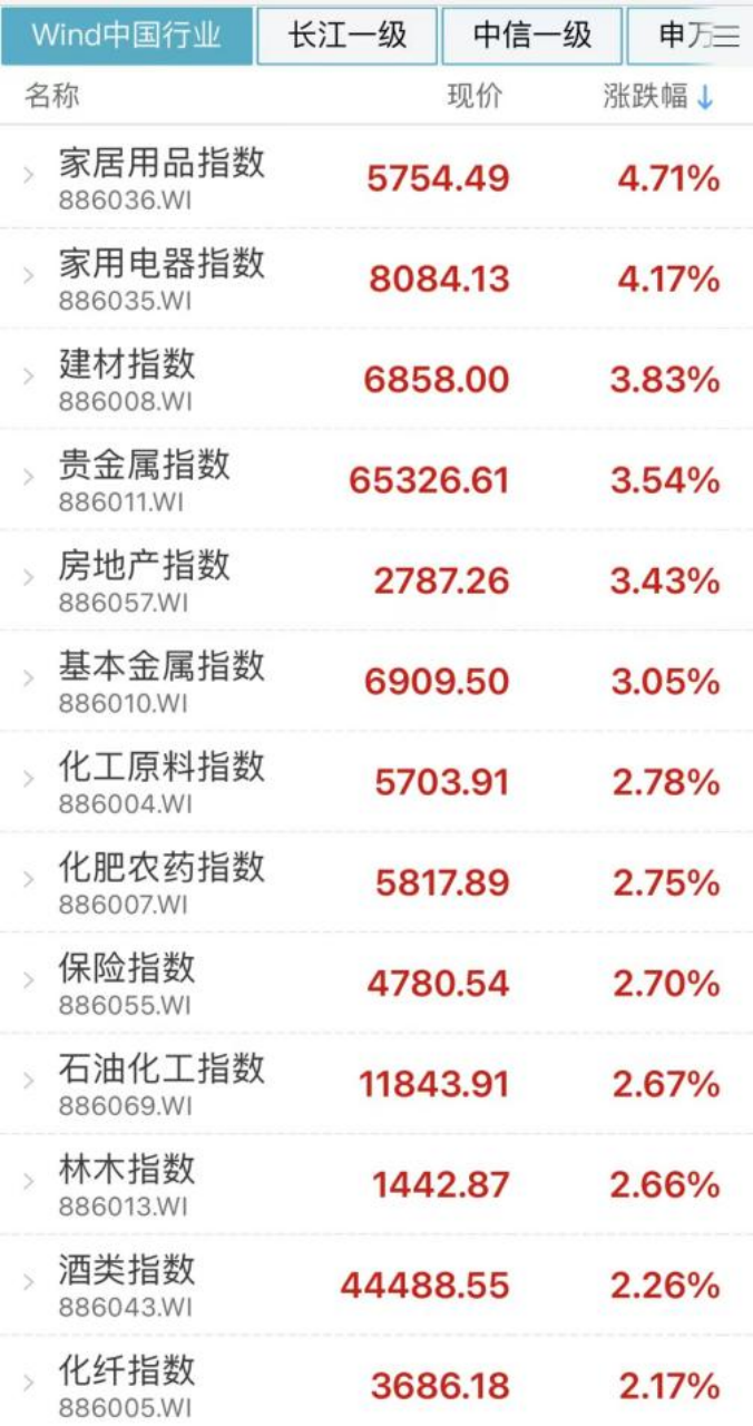 6月2日家居、家电、建材板块领涨,图源:Wind