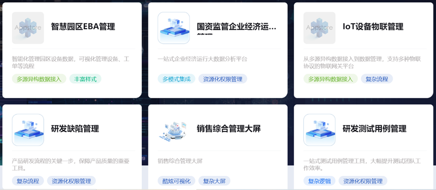 在多个案例的实施过程中,数睿数据不断提炼行业的共同特性,形成了很多应用模板,放在应用商店中,可以直接下载使用。当然,也根据实际需求快速调整和配置系统,定制专属个性化的软件系统!