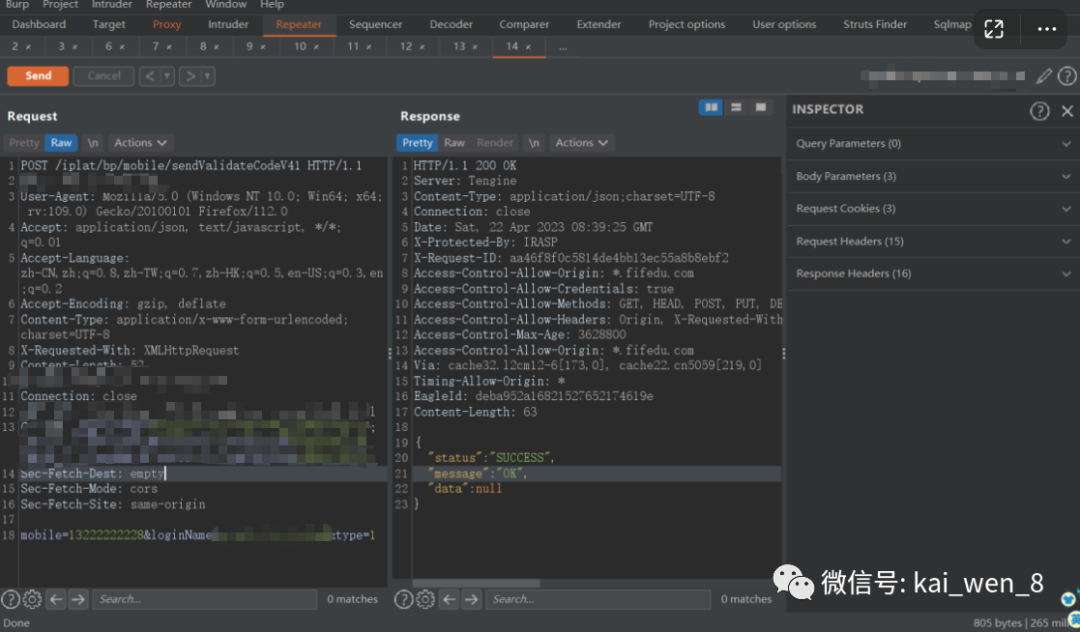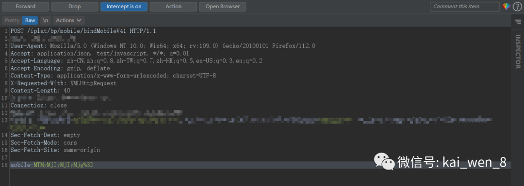 之前并没有绑定,直接绑定,随便输入一个手机号(经过测试 11位必须要有)点击获取验证码处,进行抓包。