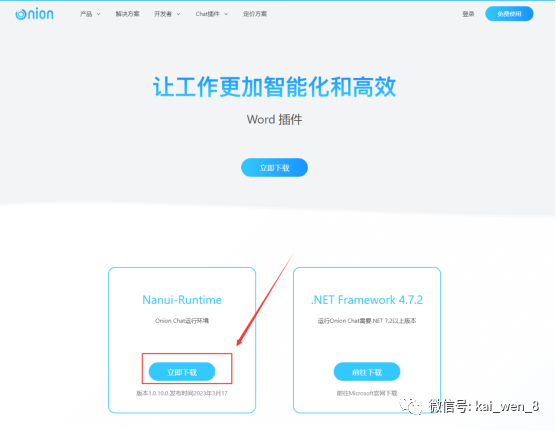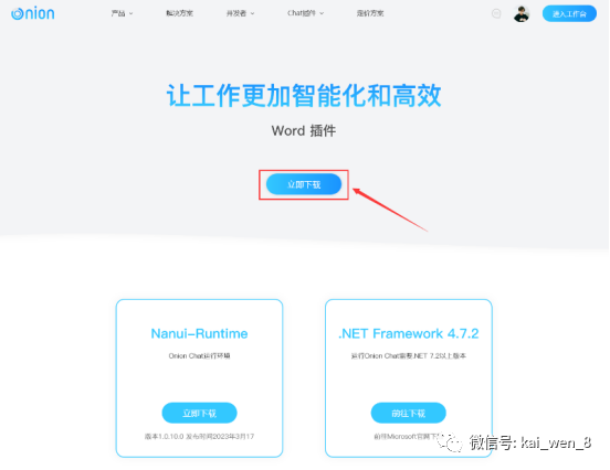 2.前往洋葱数字官网下载Word插件(下载软件安装包之前务必将杀毒软件以及防火墙关闭,避免将安装包删除)