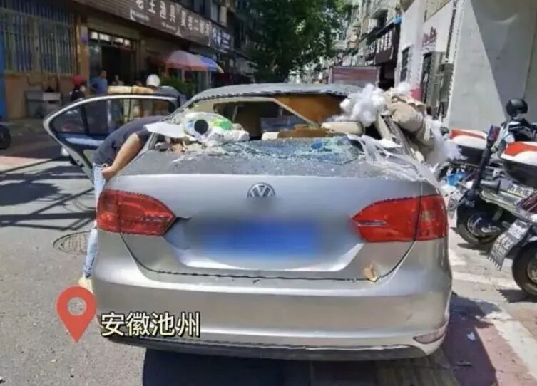 2022年5月5日,安徽省池州市,一汽车车主将车停在太阳下,后挡风玻璃存放的一瓶属于易燃易爆物品的冷媒瓶,在太阳的暴晒下引发爆炸,后挡风玻璃被炸碎,所幸当时车内无人。