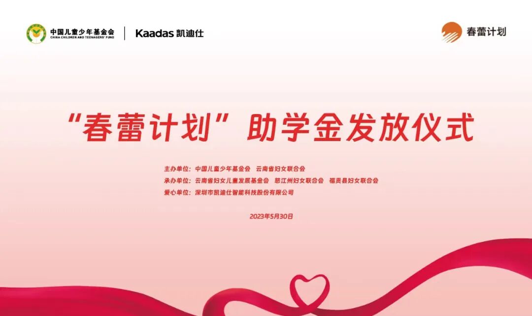 5月30日,由中国儿童少年基金会、云南省妇女联合会主办,云南省妇女儿童发展基金会、怒江州妇女联合会、福贡县妇女联合会承办的凯迪仕“春蕾计划”助学金发放仪式,在云南省怒江州福贡县架科底乡中心完小圆满举行。