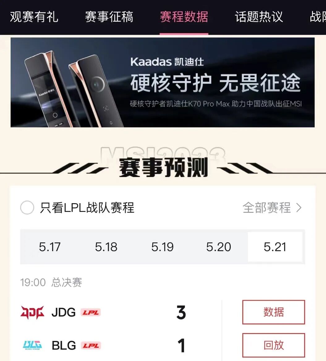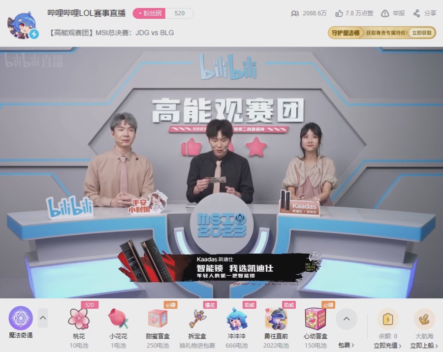 昨日,2023年英雄联盟季中冠军赛(MSI)总决赛在英国伦敦举行。来自LPL赛区两支队伍展开激烈对决,JDG战队以3:1战胜BLG战队,夺得2023MSI冠军。期间,B站两大官方直播间赛事人气值合计突破2.2亿+,赛后“JDG夺冠”相关话题登顶B站、微博、抖音三大热搜榜。Kaadas凯迪仕作为2023英雄联盟季中冠军赛哔哩哔哩直播官方合作伙伴,直播间全程助力中国战队力破万障,包揽MSI冠亚军,持续引爆品牌声量,不断触达Z世代圈层。