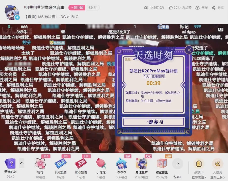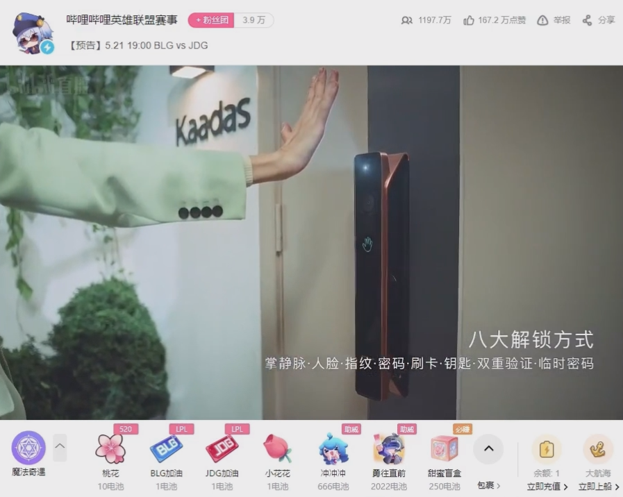 凯迪仕携手哔哩哔哩直播,全程陪伴中国战队出征MSI。硬核旗舰新品凯迪仕K70 Pro Max掌静脉3D人脸猫眼视屏智能锁,持续开启高能守护之力,携手破障前行,更有“天选时刻”派送惊喜好礼,与无数玩家共同庆祝胜利时刻。