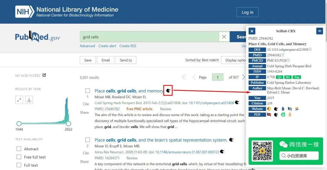 ✅ 访问文献网页时,会在文献页面上DOI/PMID/PMCID后面添加 SciHub CRX 图标