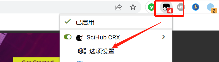 然后打开任意一个文献网页,油猴插件就会加载 SciHub CRX 脚本,加载后会出现插件设置的选择按钮,我们可以进行设置