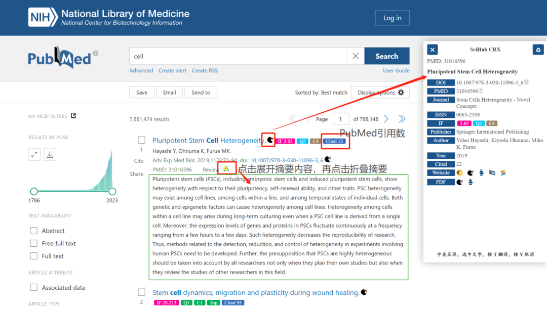 ✅ V8 支持PubMed网站特殊功能:支持期刊缩写匹配,PubMed详细引用信息,一键查看PubMed文章摘要,支持Pubmed网站筛选功能