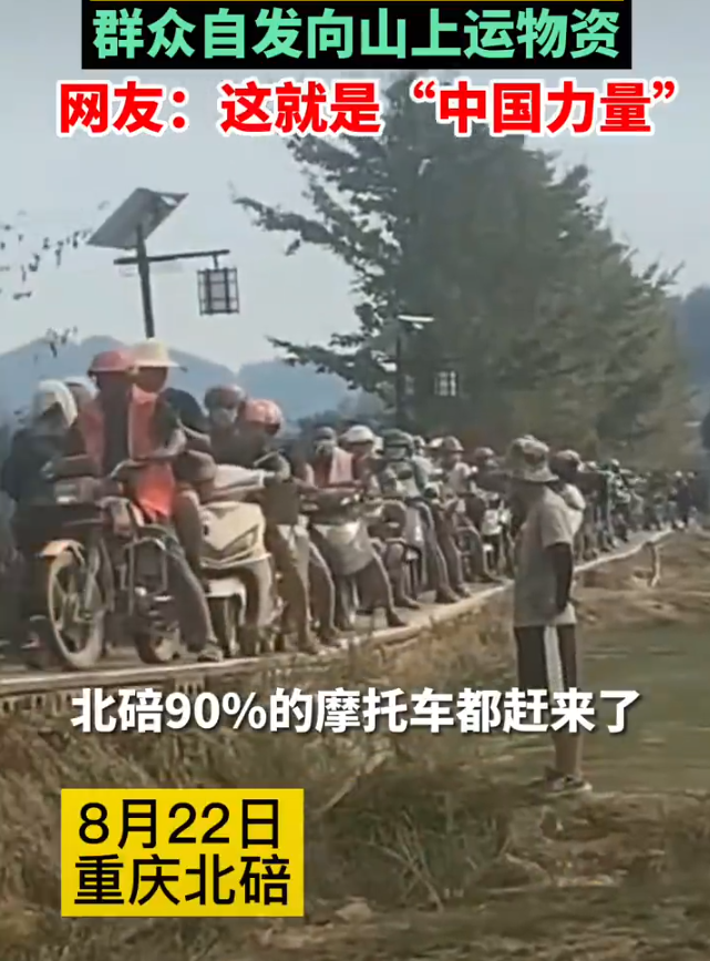 重庆青年立刻自发组织起来,骑着摩托车一辆一辆往山上送物资,全力支援消防战士。
