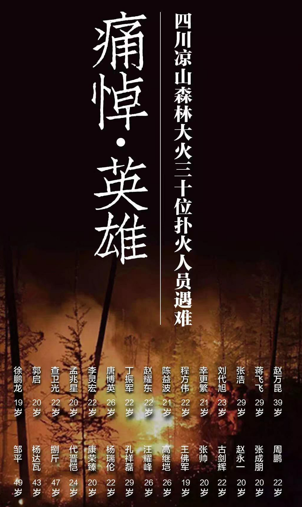 凉山火灾的火场总过火面积达到20公顷,夺走了我们30位英雄的生命。
