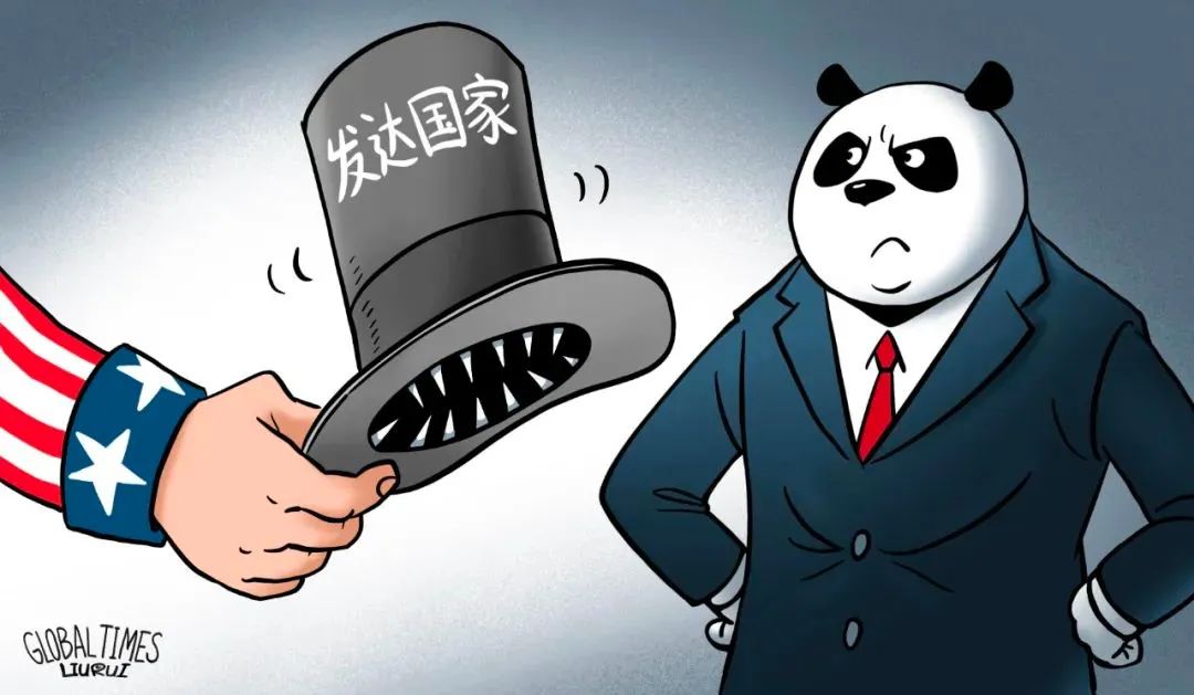 “美国想把发达国家的帽子强加给中国,不是出于对中国发展成就的赞赏肯定,而是要把剥夺中国的发展中国家地位作为遏制中国发展的一张牌。