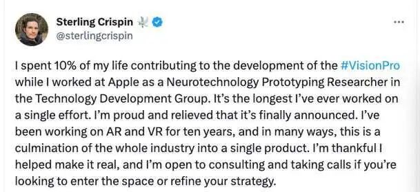 更为夸张的是,苹果还将机器学习融入到了产品中。根据苹果的一位前设计师发布的推文,我们还可以看出 Vision Pro 并不是简单地响应,它还会进行“预测”: