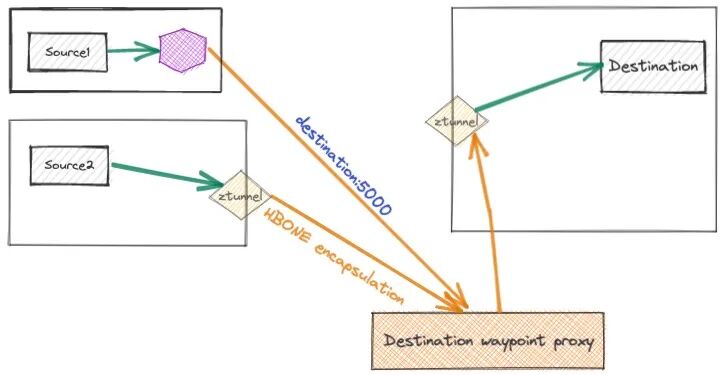 waypoint 代理是按服务帐户或名称空间来设计的;对于共享同一服务帐户的服务来说,如果其需要比服务帐户更细粒度的配置,该怎么办呢?例如,对于共享同一个服务帐户的 Destination1 服务和 Destination2 服务来说,Destination1 服务需要特定的 Telemetry 或 WasmPlugin 或 RequestAuthentication 或 EnvoyFilter 配置,而 Destination2 服务不需要。当我们需要比每个服务帐户更细粒度的特定于目的服务的配置时,我们可以继续使用 Sidecar。或者,我们可以使用自己的服务帐户为 Destination1 创建一个专用的 waypoint 代理,而不是使用 Sidecar 代理运行。