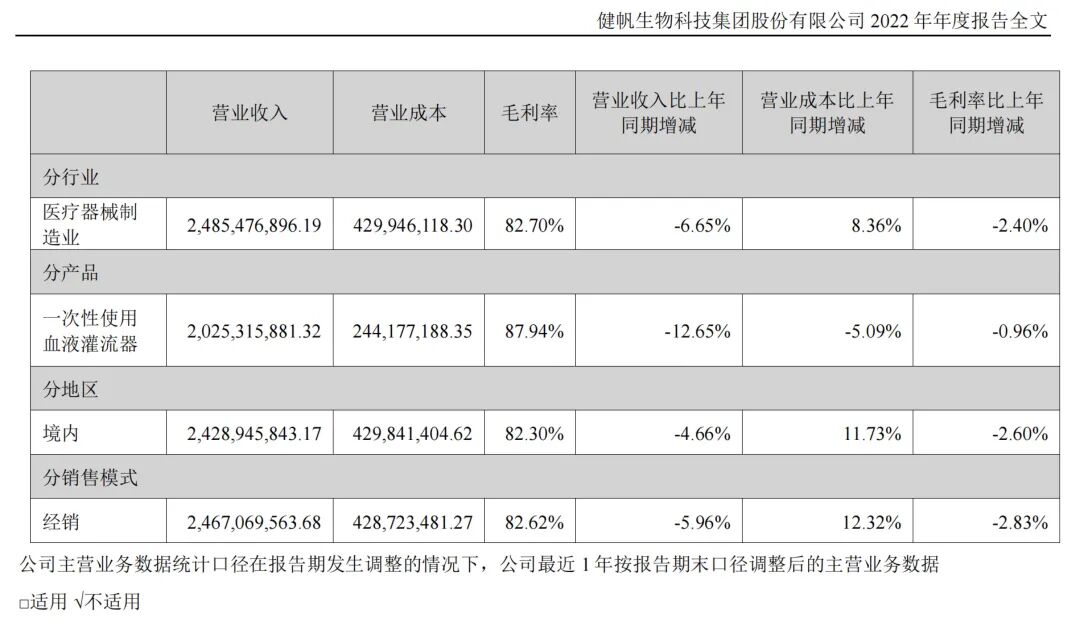 2022年报显示,虽然同比略有下滑,但健帆生物毛利率依然超过80%,净利率为35.36%。