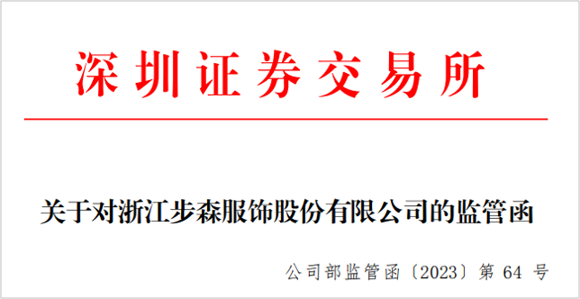 6月5日,深交所发布的《关于对浙江步森服饰股份有限公司的监管函》显示,步森公司时任董事赵玉华因涉嫌犯罪,已于2022年1月18日被公安机关刑事拘留。