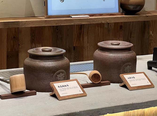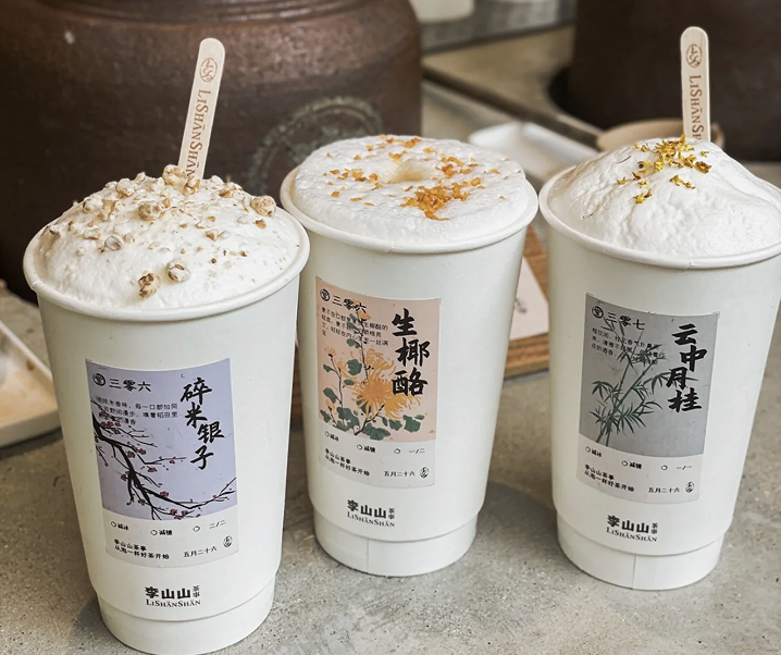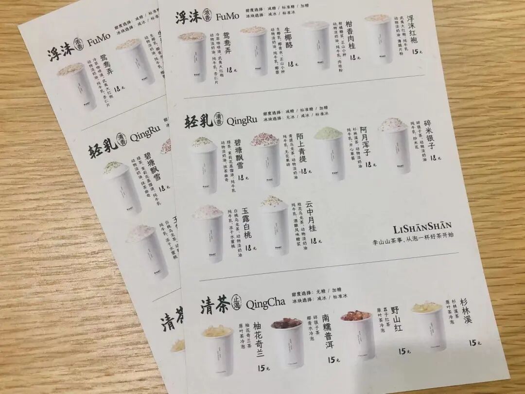 上个月,春熙路街头新开了一家个性小店:使用瓦煲煮茶,只做奶茶与纯茶 14 款产品。还有一条有些离谱的规定,“不主动提供杯盖吸管,不支持打包外带。”试营业期间,这家店已冲上成都热门饮品榜 Top 1,平均每天出品近千杯。最近,朋友圈被成都的一家茶饮店刷屏了,不少饮品伙伴前去打卡,很多人都在打听这个品牌,我马上去了解了一下。这家店叫“李山山茶事”,开在热闹的春熙路,凭借瓦煲煮茶、花式出杯等极具特色的出品模式,在试营业期间,快速冲上大众点评成都热门饮品榜 Top 1。门店位于街角处,面积在 30 平方米左右,街角的一侧是打卡墙,另一侧便是吧台,横跨整个店面。在装潢上,运用大面积原木元素搭配少量淡色布艺,一眼看过去,满满的古朴简约风。饮品只围绕鲜奶茶与纯茶做延伸,有浮沫(浓香茶底)、轻乳(清香茶底)、轻茶(纯茶)3 大系列 14 款单品,单杯售价在 15~18 元之间。李山山茶事的茶底均由瓦煲煮制而成,为了直观呈现,特意设计了出品展示环节。以浮沫系列的柑香肉桂为例,后厨在浮沫(类似奶泡)中加入柑橘糖浆,调和好风味,拿到前台后,再由店员进行最后一步操作:在顾客面前摆放托盘和杯子,将茶从瓦煲中盛出,缓慢倒入杯中,最后撒上肉桂粉,出品流程颇具观赏性。
