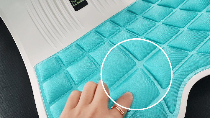 再者就是,为了分散上半身的压力,它的坐垫做了很多小格子。