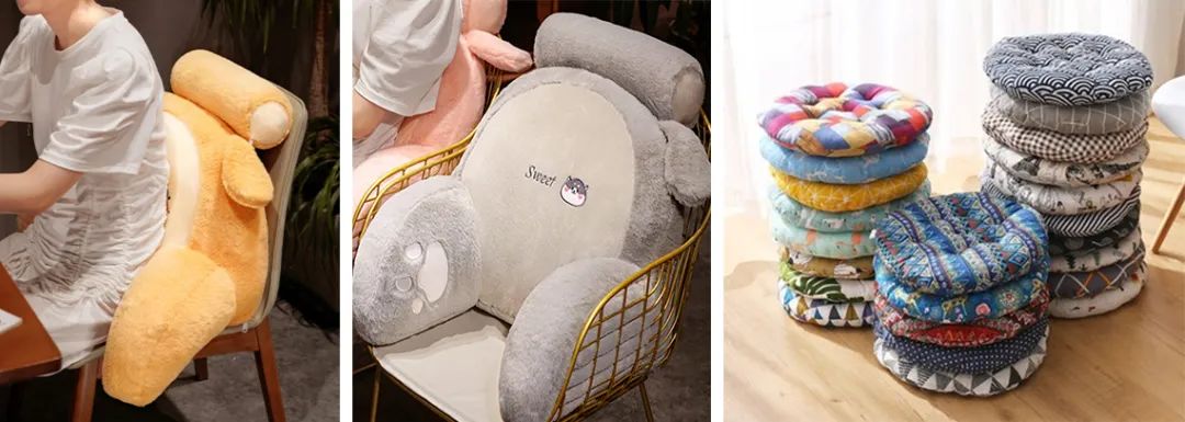 虽然,咱们很难靠自身毅力保持正确的坐姿,但我们可以靠外力啊,比如各种靠垫/坐垫。