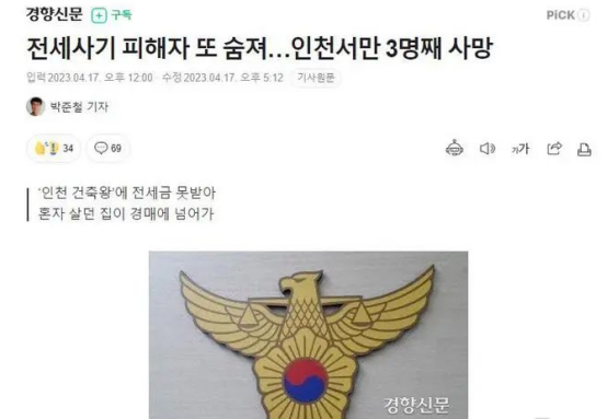 “失去工作后,我没有收入,存款早就用光了。9000万韩元的保证金,一直拖着不还给我。我曾经去投诉也报过警,但政府关于全租房诈骗的对策,让人非常失望。我无法再坚持下去了。最后,希望我的死能推动这个问题尽快解决。再见。”