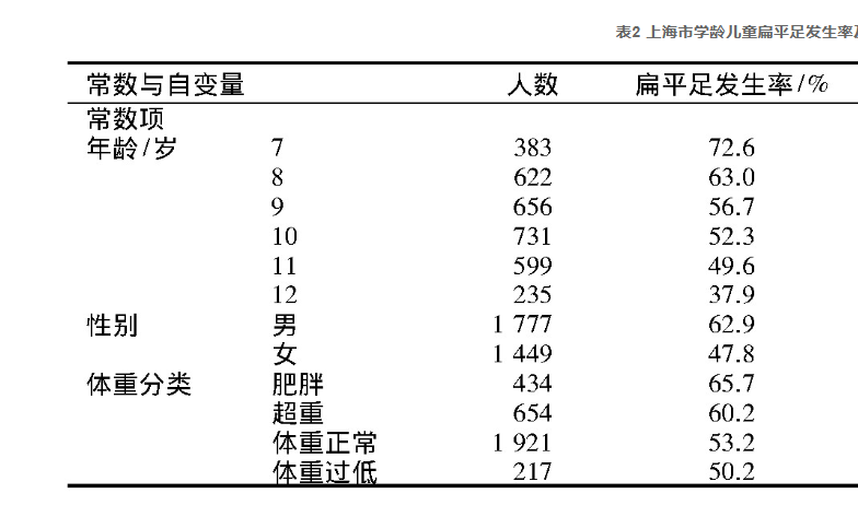 而复旦大学附属华山医院研究人员在2020年对上海市10所中小学校3226名学生进行测量后,所得到的数据更令人担忧:上海7-12岁学生的总体扁平足发生率为56.1%,7岁时最高为72.6%,12岁时降至37.9%。而男童为62.9%,高于女童的47.8%。