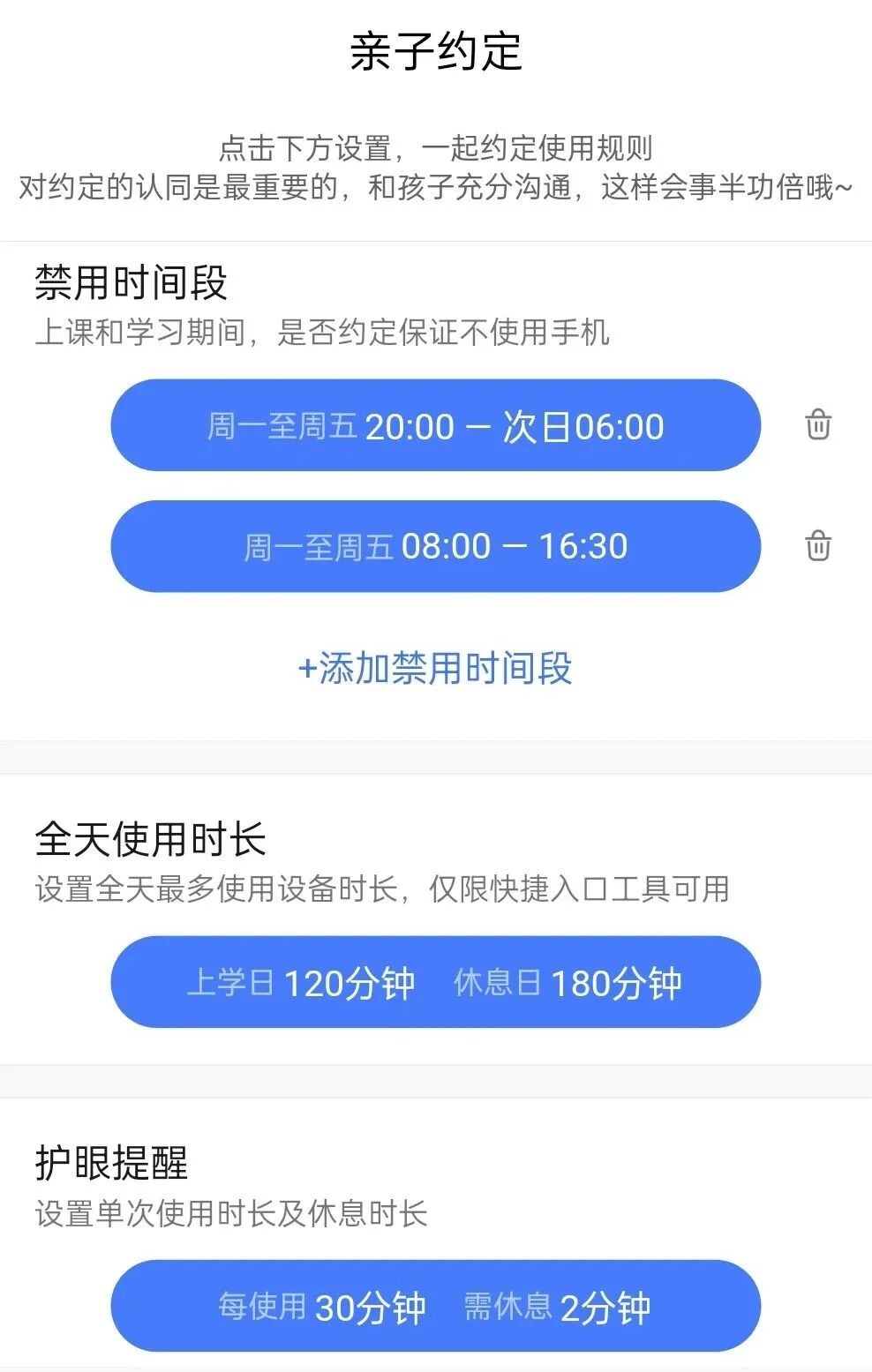 之前我们跟孩子约定手机使用时间的时候,没办法精准的控制时间,通过这个功能,孩子可以自觉遵守约定,时间一到就不玩手机了,我们省心了很多。