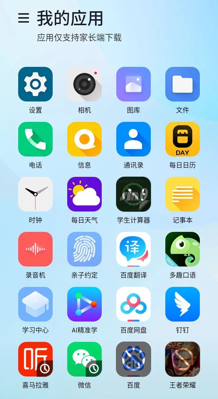 支持各种应用下载,在家长同意后,可以下载各类学习类软件,也可以安装社交、娱乐的应用。
