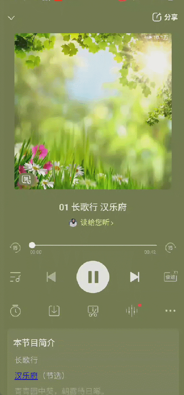 畅听模式可理解成将手机变成了一部随身听,内含课内教材课文听读、课外海量优质音频资源,均免费供孩子磨耳朵练听力使用。播放资源时,支持倍速播放、AB复读功能,帮助孩子更好的练习。