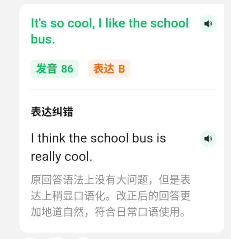 还可以播放自己的对话内容,和纠错后的内容进行对比,快速找到自己发音的的薄弱点。