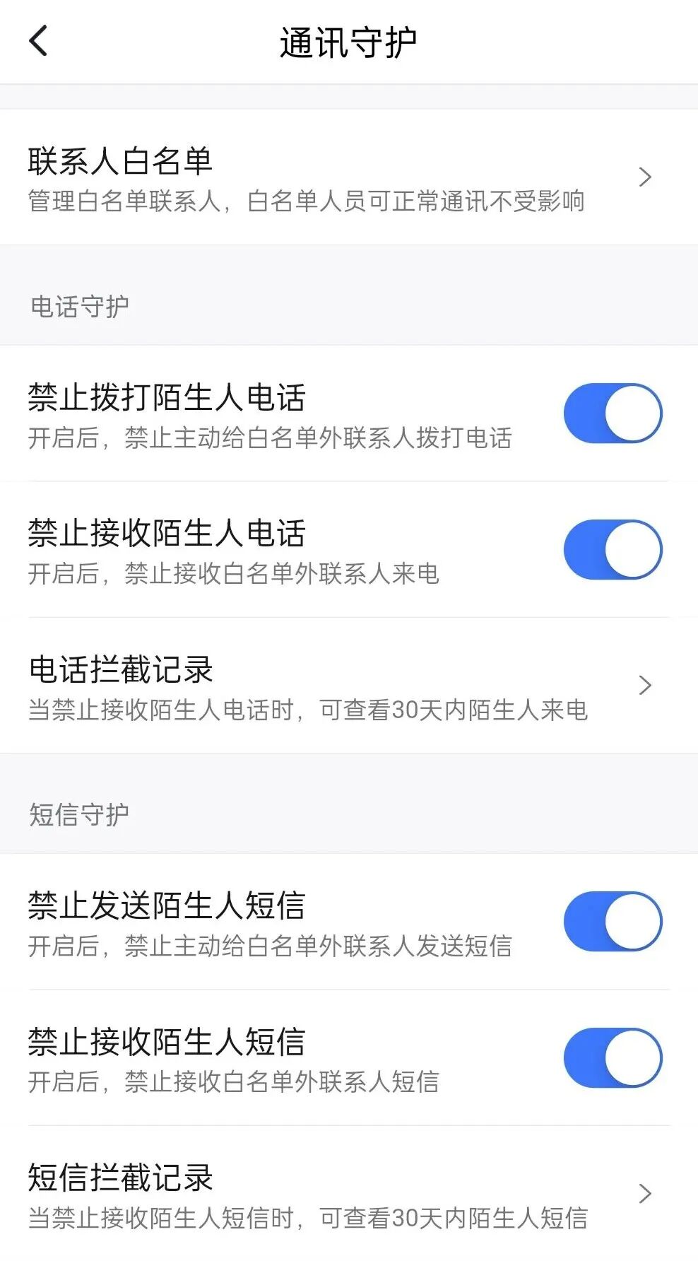 我们自己每天都会因为各种手机信息、来电骚扰而烦躁,当然也会更担心孩子收到来自陌生人的骚扰,接收到各种不良信息信息。这时候就可以使用“通讯守护”的功能,来设立孩子的白名单。从而帮孩子建立一个保护墙,避免现在被滥用的垃圾信息、垃圾电话所骚扰。