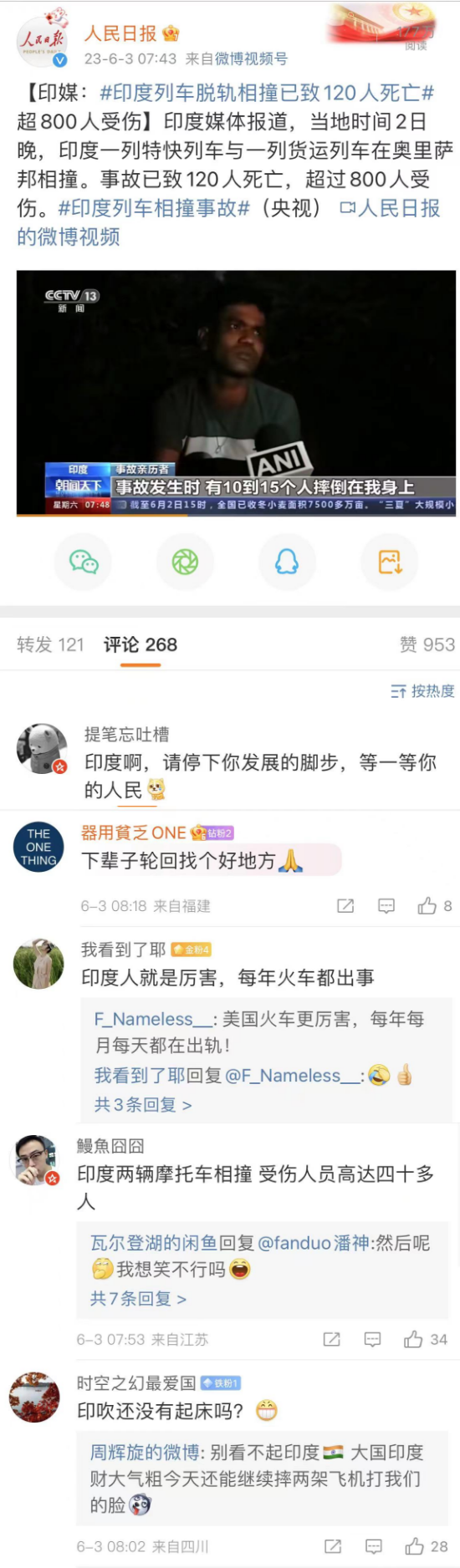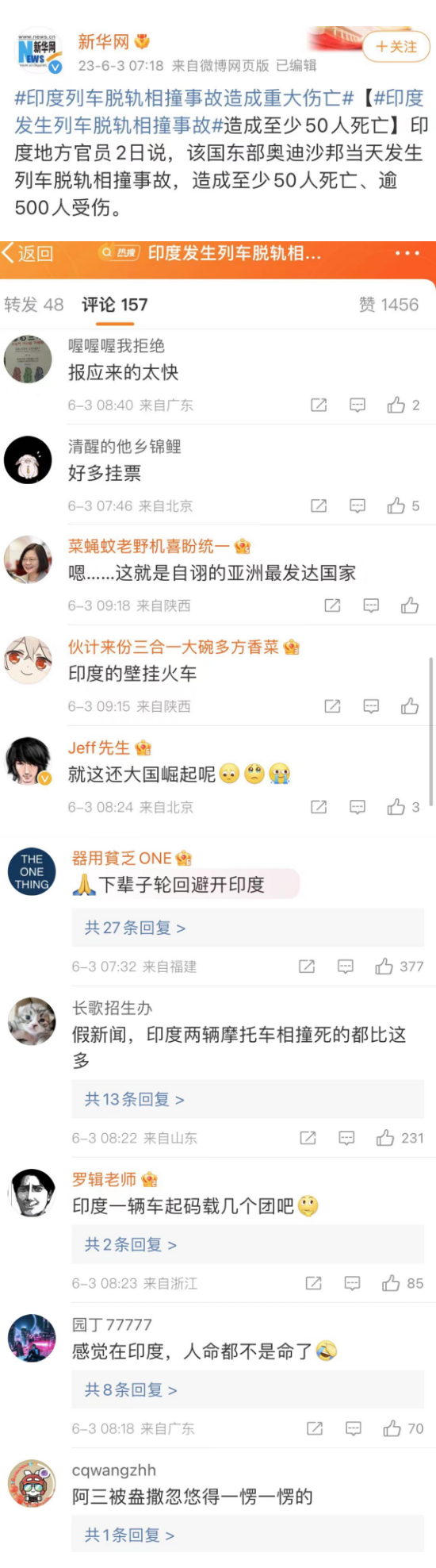 在上周末,印度发生了惨烈的,数百人死亡的列车事故。我国领导人也向印度致电慰问。