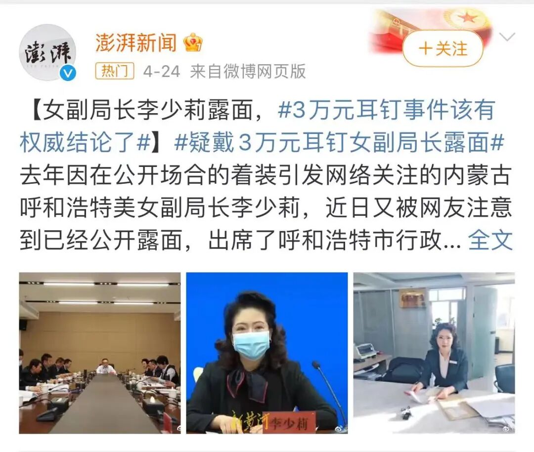 而民众之所以觉得假新闻可信,自然是有前车之鉴。比“软肋事件”更早1个月出事的,佩戴名牌昂贵耳钉丝巾上防疫发布会当读稿机的呼和浩特某副局长,在一个多月前就已经开始公开露面了。而去年很多媒体新闻口中的“正在调查”,估计就无疾而终了。